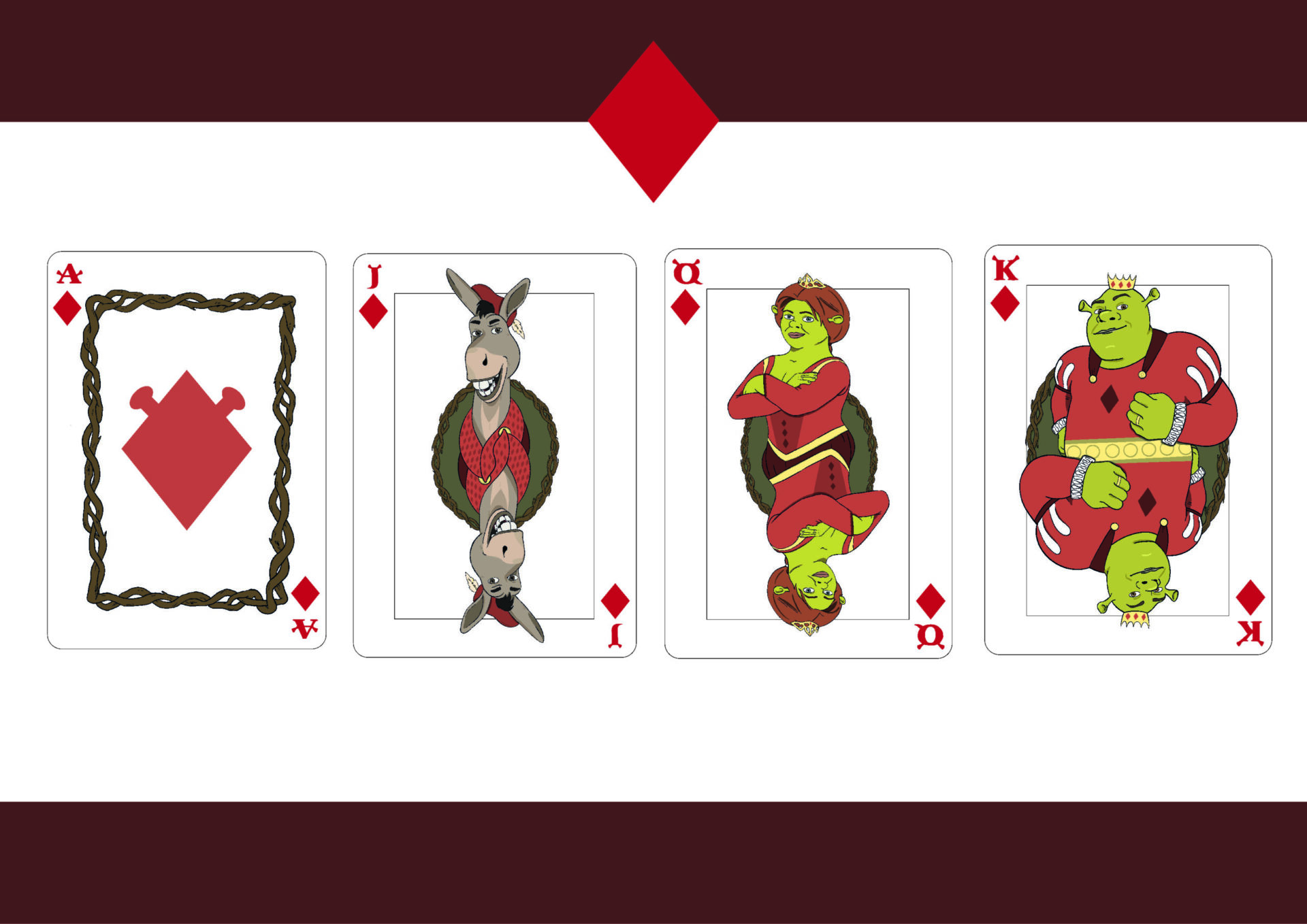Baraja francesa con temática de la película Shrek.